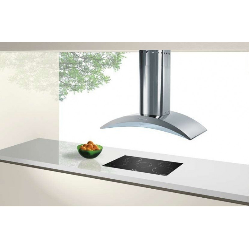 ELEA ISOLA è la prestigiosa cappa isola firmata Baraldi. Elegante ed attuale in questa versione inox con camino a sx. L'ampio piano orizzontale da 116x60 cm., ad aspirazione perimetrale, può essere usato come mensola o può diventare un pratico punto d'appoggio.